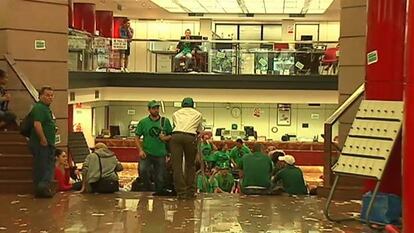 Decenas de miembros de la PAH ocupan la sede del Banco Popular