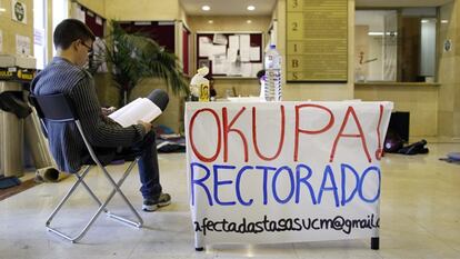 Decenas de estudiantes llevan cinco días encerrados en el Rectorado de la Universidad Complutense de Madrid (UCM). Intentan evitar, dicen, que la universidad expulse a los alumnos que aún no han abonado el segundo plazo de la matrícula. La UCM comunicó el pasado viernes que los estudiantes que todavía no han pagado las tasas de este curso tienen hasta el 30 de mayo para hacerlo. Los estudiantes encerrados, unos 40, aseguran que mantendrán su encierro hasta que el rector, José Carrillo, se comprometa por escrito a ello.