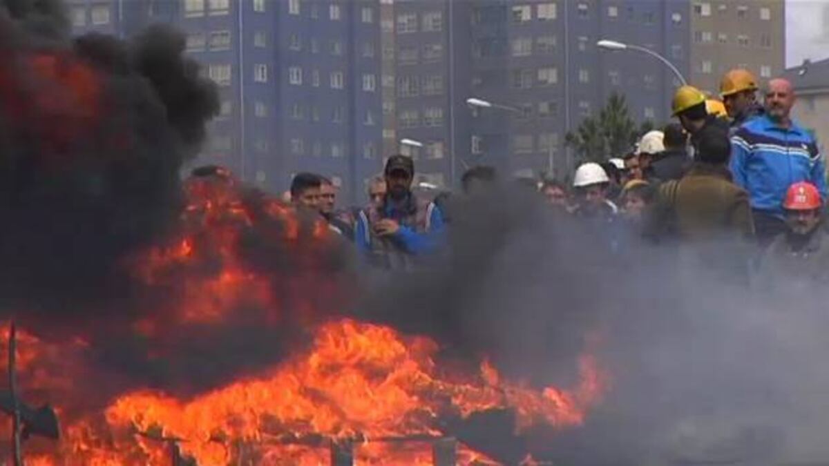 Más de 3.000 trabajadores de Navantia Ferrol y Fene y de empresas auxiliares del sector naval han cortado el tráfico durante casi dos kilómetros y han quemado barricadas de neumáticos ardiendo en una nueva manifestación para reclamar carga de trabajo.