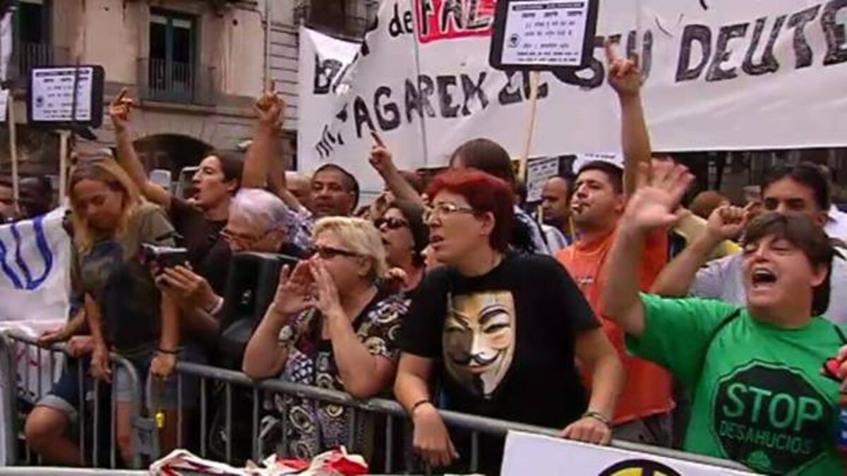 Las autoridades fueron recibidas por los abucheos de unas 200 personas que se manifestaban en la plaza, entre trabajadores del autobús, subsaharianos del Poblenou y defensores del laicismo. Este año, la policía alejó unos 10 metros el sitio autorizado para la concentración a comparación del año pasado, cuando se arrojaron algunos objetos.