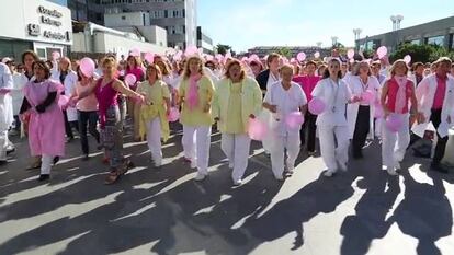 Personal y pacientes del Hospital La Paz se han enfundado guantes rosas se han aprendido varias coreografías para participar con un vídeo en el concurso europeo Pink Glove Dance contra el cáncer de mama. El hospital que consiga más votos en internet antes del 8 de noviembre ganará 10.