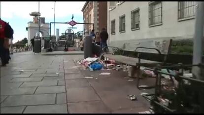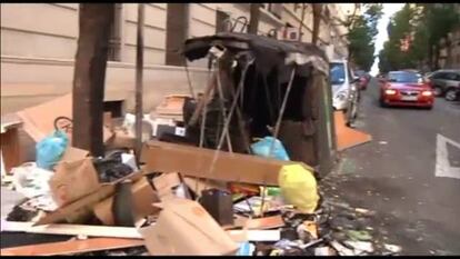 Como si de un país se tratase, los diferentes distritos de Madrid presentan cada uno sus hechos diferenciales en cuanto al aspecto que reflejan a causa de la huelga de limpieza viaria y de jardines. Hay vecinos que ponen el acento en la suciedad y los olores. Y otros, en los impuestos que pagan, que no se corresponden, dicen, con lo que ven cuando salen a la calle. Montañas de basura que, en algunas zonas, se suceden cada cinco metros y en otras se ocultan tras calles aledañas a las avenidas principales. Todos ellos, eso sí, repiten palabras como "vergonzoso", "desastre" o "impropio" de una ciudad que, gracias al cielo, tiene estos días el tiempo meteorológico de su parte: "Si lloviese esto sería una auténtica cloaca".