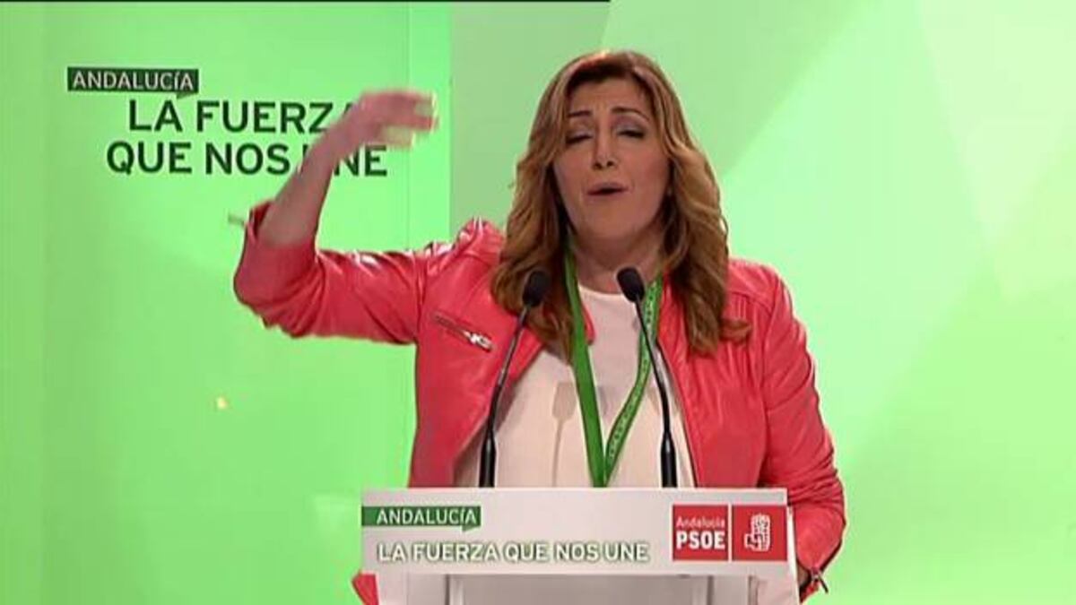 El secretario saliente, José Antonio Griñán, ha recibido elogios de su sucesora. "Si estamos aquí es gracias a su generosidad”. Ha calificado a Griñán de “hombre bueno, decente, honrado y muy inteligente”. Pero después ha vuelto a la autocrítica al hablar de las últimas elecciones autonómicas, en las que el PSOE logró por primera vez menos apoyo que el PP. “Hay que analizar lo que pasó, sin miedos”. Susana Díaz, no obstante, se muestra convencida de que si hubiera en estos momentos elecciones en Andalucía el PSOE sería el partido más votado, pero ha indicado que eso no sería “suficiente”, sino que aspira a conseguir “una amplia mayoría social”.