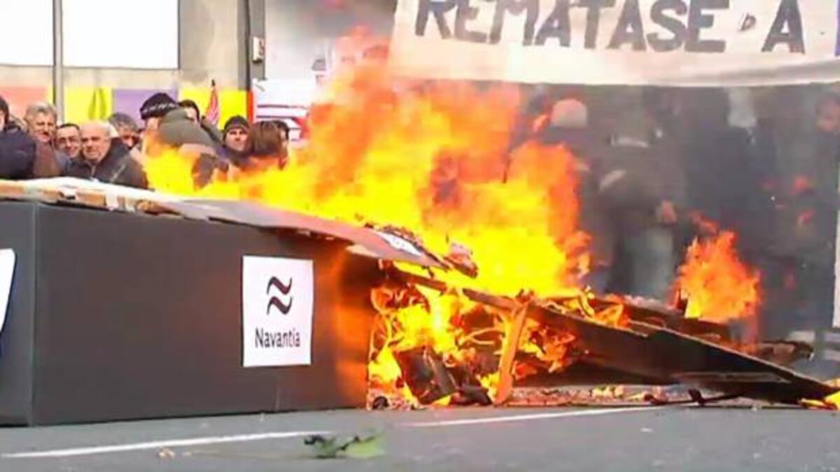 La protesta ha comenzado en la Alameda, a la que los trabajadores llegaron en una veintena de autobuses, y se ha dirigido al Pazo do Hórreo, en donde se celebra un pleno. Los manifestantes portaron un ataúd de cartón con el nombre de Navantia para representar la situación de la empresa y siluetas con las caras de los ministros Soria y Montoro, la del presidente el Gobierno, Mariano Rajoy, y la de Feijóo. Una vez ante el Parlamento prendieron fuego al féretro y a las figuras, que ardieron entre gritos de protesta de los operarios, que llevaban pancartas con lemas como 'Remátase o traballo, remátase a paciencia' o 'Carga de traballo para Navantia, xa. Polo futuro da comarca' y lanzaron varios petardos. La protesta estuvo vigilada por un amplio dispositivo de agentes antidisturbios, que vallaron la zona.