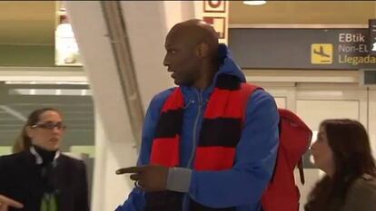 El jugador ha aterrizado a las 14.30 procedente de París, tras un viaje de 23 horas. Después, se ha trasladado directamente a Vitoria ataviado con una bufanda con los colores azul y granate del Baskonia.