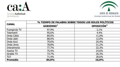 Esta advertencia ya fue trasladada a la Cámara autónoma en mayo del pasado año, cuando el CAA alertó de que, “en determinadas televisiones locales públicas, la aparición de los representantes de la oposición en los informativos era estadísticamente despreciable”.