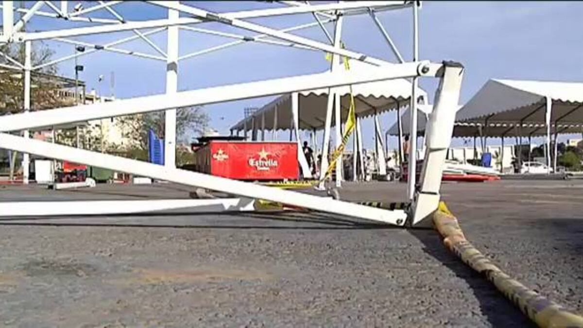 Al lugar se desplazaron más de 60 efectivos entre policías, bomberos y Protección Civil que atendían un acto deportivo próximo. Manuel Marín, como edil del PSPV, preguntará hoy si desde el Ayuntamiento se revisaron por la mañana a primera hora las sujeciones. El de este domingo fue el cuarto día con notables ráfagas de viento en Alicante. La noche del sábado el viento se llevó por delante 22 jaimas y carpas de la feria de coches.