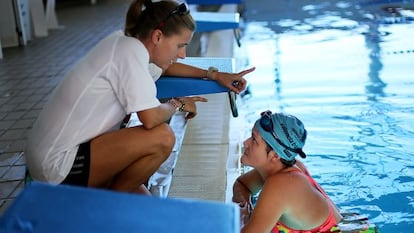 A su lado, Raquel Landín, su preparadora, escucha todo con atención. Además de entrenadora y atleta profesional, Landín es especialista en coaching deportivo. De vez en cuando rectifica o matiza alguna de las afirmaciones de su pupila. "Es importante tener metas realistas, si no, el fracaso es peor", explica, para luego continuar: "Yo le digo: 'Si te levantas y ese día no te notas, pues ese día lees o escribes, no pasa nada". Ambas saben que abusar de la intensidad en los entrenamientos podría provocar una recaída —crisis de la enfermedad con potencial para dejar más secuelas—.