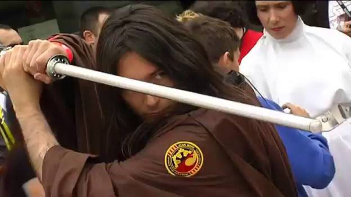 Fans de 'Star Wars' se citan en un cine en Barcelona donde, vía satélite, se presentó la nueva entrega de la saga