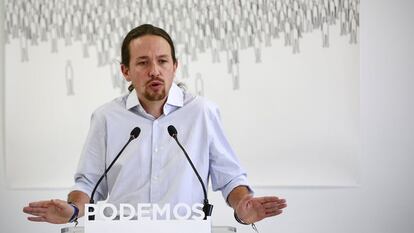 El secretario general de Podemos, Pablo Iglesias, solemnizó ayer su oferta a los catalanes. Un día después de lograr un resultado decepcionante el 27-S —11 escaños cuando hace meses las encuestas les situaban como primera fuerza— se comprometió con la celebración de un referéndum vinculante en Cataluña y dejó claro que su partido haría campaña por el no. Las declaraciones de Iglesias, en una comparecencia en la sede central de la formación en Madrid, son su pronunciamiento más nítido en política territorial tras una campaña en la que la candidatura Catalunya Sí que es Pot —integrada por Podemos, Iniciativa, Esquerra Unida y Equo— ha hecho equilibrios con la independencia desmarcándose de la confrontación entre partidarios del sí y del no.