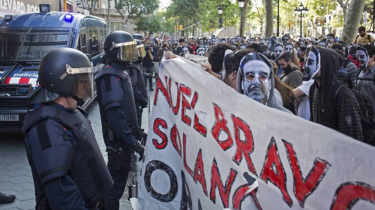 Doscientos manifestantes se plantan frente a una oficina del empresario mientras los encapsulan los Mossos d'Esquadra