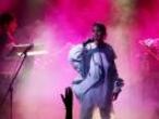 Cécile desprende un talante singular desde el mismo atuendo, embutida ayer en un vestido que parecía una carta de ajuste pixelada y mirando a la platea de la Ciudad Universitaria a través de sus características gafas de pasta, esta vez de blanco marfileño. Pero raparse la cabellera o retorcer las posibilidades del estilismo de poco sirve si falta la sustancia, justo aquel elemento más diferenciador en la de Florida. Cécile nunca es estridente; más bien parece canturrear, una ocupación que diríamos tan sencilla como enjabonarse bajo la ducha. Y no. Cerramos los ojos y nos acaricia, abraza y envuelve. Engatusa de tal manera que, a ratos, ha de alejarse el micrófono de los labios para no abrumar y que sintamos su voz como torrente líquido.