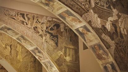 Aunque no lo parezca por el litigio y el cansino ruido mediático, la estrategia de la Generalitat pasa por no poner demasiadas trabas a la devolución de las 97 piezas a Aragón. La razón: su verdadera y crucial batalla está en las excepcionales pinturas murales románicas del monasterio, en el MNAC desde hace 40 años, pero que también de manera provisional un juzgado de Primera Instancia de Huesca, ahora el Número 2, ha pedido que se devuelvan. Aquí no hubo compra. Todo fue más épico... y verbal. En agosto de 1936, y ante el incendio del monasterio por milicianos de la CNT-FAI, la Generalitat envió una misión, dirigida por mosén Josep Gudiol, que, conocedor de técnicas muy complejas, para salvaguardar las pinturas las extrajo de los muros, con la ayuda entonces de las gentes de Villanueva de Sijena, ente ellas el cantero, padre del actual alcalde, hoy de los más beligerantes para que regresen las obras. Las monjas se comprometieron a un depósito y a un proceso de donación que no cuajó. Amén de una batalla jurídica más fuerte si cabe que por las piezas, la Generalitat alerta que las pinturas no aguantarían un segundo arranque, tesis con la que harán una campaña con apoyo de expertos extranjeros.