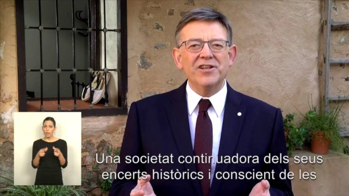 El presidente, que ha comenzado y acabado su mensaje con versos de Miguel Hernández, ha insistido en que la Generalitat está cumpliendo con un escenario de estabilidad, honradez y diálogo, que permitirá a la comunidad autónoma reconstruirse.