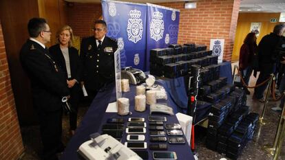 La droga se había practicado en un horno en Colombia o en México, tras haber importado ladrillos similares procedentes de España. Para evitar que se dañara en el transporte lo fijaban con silicona expandible en el interior de los ladrillos. "Lo que más nos llamó la atención es que entraran de nuevo este tipo de material a la península, cuando somos los grandes exportadores. Por eso seguimos toda la ruta hasta dar con la nave. Se trataba de una organización muy compleja", ha señalado el comisario jefe de la Brigada Provincial de Policía Judicial, José Luis Conde. Los agentes han pinchado en estos dos años -la investigación comenzó en marzo de 2015- más de 200 teléfonos móviles.