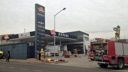 Los bomberos, en la gasolinera.Foto: atlas | Vídeo: Ajuntament Sant Sadurní | ATLAS