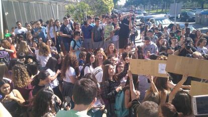 Una clase de cuarto de la ESO plantó este miércoles al profesor. Lo hizo tras reiterados comentarios homófobos a lo largo de la semana. Como señal de protesta, cerca de 200 alumnos del centro se concentraron en el patio con banderas arcoíris y pancartas y mensajes que condenaban la actitud del profesor. El Departamento de Enseñanza abrió una inspección y anunció que se organizarían reuniones de mediación con los alumnos y el docente.