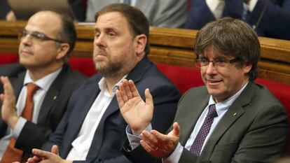 La victoria del independentismo con la aprobación de la ley de ruptura dejó una imagen que le debilita, la mayor unidad de la oposición desde que se puso en marcha la legislatura: La mayoría de los miembros de los cuatro partidos de la oposición (Ciudadanos, PSC, PP y Sí que es Pot) puestos de pie y aplaudiendo unas palabras de Joan Coscubiela (CSQP), miembro de uno de los grupos que más se ha aproximado a las posiciones a favor del referéndum del Govern: “No quiero que mi hijo Daniel vea que una mayoría puede tapar los derechos de los que no piensen como ella”.