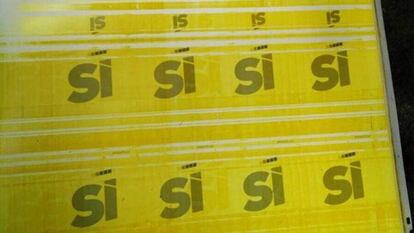 Los agentes encontraron en esa nave, además de los carteles con el logo de la Generalitat, otros en los que expresamente se invita a votar sí. La Guardia Civil continúa sus investigaciones en diferentes emplazamientos en busca de material sobre el referéndum. Junto a estas pesquisas, el instituto armado ha cerrado en los últimos días, por mandato judicial, tanto la web oficial del referéndum como otra puesta en marcha después por la Generalitat con el mismo fin.