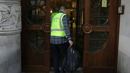 La Guardia Civil entró en la sede del Departamento de Economía y Hacienda —dirigido por Junqueras— a las 8.00. Esas oficinas fueron, por la mañana, el epicentro de las concentraciones de protesta que empezaron a formarse apenas una hora después. Los agentes detuvieron allí a cuatro personas: el secretario general y número dos de Junqueras en Vicepresidencia, Josep Maria Jové; el secretario de Hacienda, Lluís Salvadó; el director de Patrimonio, Francesc Sutrias; y la directora de Servicios de Vicepresidencia, Natàlia Garriga. En la calle, cientos de personas gritaban “votaremos”, “democracia” e “independencia”.