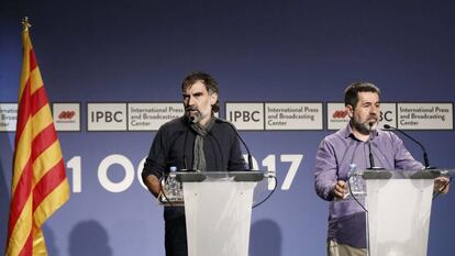 El acuerdo sobre el paro se fraguó ayer por la tarde en la sede de CC OO a la que asistieron, entre otros, el vicepresidente Oriol Junqueras; Jordi Sánchez, presidente de la Asamblea Nacional Catalana (ANC), y Cuixart. Hasta ayer, había convocada una huelga general para el martes secundada por los sindicatos minoritarios CGT, Intersindical Alternativa de Catalunya (IAC), Intersindical CSC y COS. Se trata de organizaciones clave en algunos sectores como el transporte o la educación, pero los sindicatos mayoritarios rechazaron unirse a ella. Sin embargo, tras la jornada de ayer, Cuixart anunció que la Mesa por la Democracia, que también integran patronales como Pimec y Cecot, Unió de Pagesos y entidades sociales, llamaba a la “huelga general” para mañana martes.