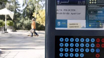 Los madrileños tampoco podrán aparcar en la zona del servicio de estacionamiento regulado (SER, los parquímetros) hasta las tres de la tarde de mañana sábado. Así lo ha decidido esta mañana el Ayuntamiento de la capital, tras mantener una reunión con los responsables de tráfico, movilidad y medio ambiente. Esta es la antesala del llamado escenario 3, que impediría entrar al 50% de los vehículos. No obstante, este viernes el Ayuntamiento ha señalado que el domingo 15 de octubre no se darán las condiciones para aplicar ese escenario.