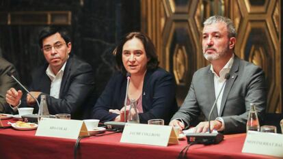 El día pinta políticamente trepidante. Y en el frente del Ayuntamiento de Barcelona, así ha empezado. Con sorpresa. Había previstos dos plenos extraordinarios —uno forzado por los partidos independentistas y otro por los partidos del gobierno—, pero solo se ha podido celebrar uno, porque la oposición en bloque ha votado en contra de celebrar el segundo. Así, el PSC, que con su texto buscaba desmarcarse públicamente del artículo 155 de la Constitución, como le pide la alcaldesa Ada Colau, pero también de la Declaración Unilateral de Independencia (DUI), se ha quedado sin poder hacerlo. Y en cambio, ha votado en contra del texto de los independentistas que rechaza la suspensión de la autonomía. El enfado en el ejecutivo ha sido mayúsculo y tanto BComú como el PSC han acusado a los independentistas de “bloquear el debate”.