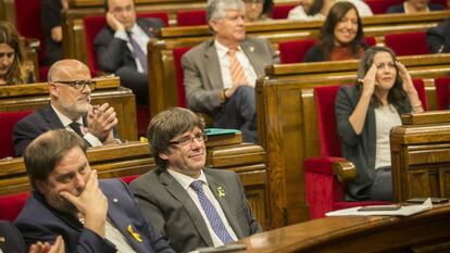 El presidente de la Generalitat abandona el Parlament entre aplausos