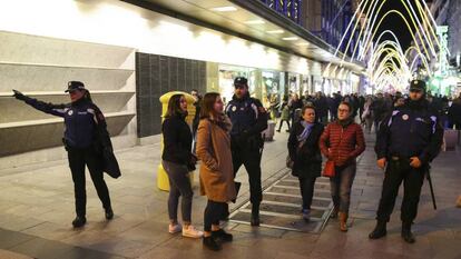 Barreras de agentes municipales bloquearon a las 19.10 de ayer el acceso a calle del Carmen desde la Puerta del Sol y el de la calle de Preciados desde la plaza de Callao, para obligar a los peatones a circular en un solo sentido por ambas vías. La medida ha sido puesta en marcha por el Ayuntamiento en momentos de aglomeraciones durante la campaña de Navidad. Para cambiar de sentido, los viandantes tenían que dar la vuelta o cruzar por las calles que conectan las dos vías (Tetuán, Galdo y Rompelanzas), que también tenían vigilancia policial.