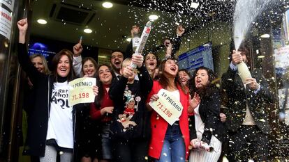 No fallaba. Cada vez que los niños y niñas de San Ildefonso cantaban uno de los premios, a los pocos segundos las trabajadoras de la administración de Doña Manolita empezaban a saltar de alegría. Tras el cristal de seguridad que separa a las empleadas de la marabunta de periodistas, las trabajadoras se abrazaban y se hacían, temblorosas, selfis con los carteles que imprimían con los números premiados. "En los seis años que llevo aquí es la primera vez que toca el Gordo, ha sido muy emocionante", contaba Lidia, una de las empleadas más jóvenes de una plantilla de unas 30 personas.