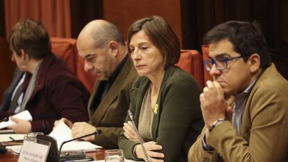 Junts per Catalunya ya ha propuesto que Puigdemont sea investido por vía telemática para evitar así la detención. “Es un invento que no pueder ser. No es legal y no tiene ni pies ni cabeza”, dijo ayer Carrizosa. “No sería la mejor forma de empezar el mandato. Recordaría demasiado a cómo acabó”, afirmaron miembros de los comunes que apuntan que las negociaciones sobre la Mesa irán en el mismo paquete que la intención del Govern de desistir o no de la vía unilateral. Queda el interrogante de si Carme Forcadell, en libertad provisional y con una causa abierta en el Supremo, estaría dispuesta a asumir de nuevo la presidencia del Parlament.