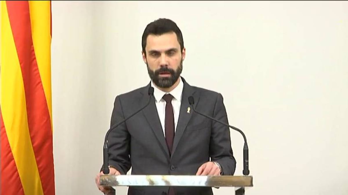 Roger Torrent, presidente del Parlament, ha convocado para este jueves a las 17.00 horas de la tarde la sesión de investidura de Jordi Turull como candidato a presidente de la Generalitat. En un discurso en la sala de audiencias, el presidente ha explicado que ha decidido avanzar la ronda de contactos con los grupos parlamentarios por el "compromiso" que ha contraído en defensa de los “derechos políticos de los diputados”. “Somos conscientes de las injerencias que hemos vivido en los últimos días y las que puede haber este viernes”, ha señalado en alusión a que el juez del Tribunal Supremo, Pablo LLarena, ha citado a seis dirigentes independentistas, entre ellos Turull, con el riesgo de que pueda entrar en prisión. La CUP, cuyos votos son necesarios para que el candidato de JxCat sea presidente, se reunirá a las 15.00 horas para decidir si vota o no a favor del candidato.