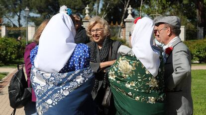 La alcaldesa Manuela Carmena eligió uno de esos escenarios, la Rosaleda del Parque del Oeste, para presentar este viernes la agenda festiva y unos carteles, obra de la ilustradora Mercedes de Bellard, que también han sido impresos en chapas y folletos. En aras de la eficiencia propia de la actividad agrícola que tan célebre hizo a San Isidro, este año la fiesta saldrá algo más barata que en 2017, apuntó la alcaldesa: 1,2 millones de euros, lo que se gastó en 2016, frente a los 1,5 del año pasado.