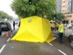 Un psicólogo del Samur atiende al conductor del vehículo que la ha arrollado