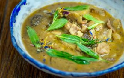 Larumbe y Sánchez llevan dos años colaborando para elaborar platos tan saludables como sabrosos. “Emplearemos las hierbas de las que dispongamos en cada momento, porque incluso en una estación hay plantas que se pueden recolectar solo durante unas semanas”, explica Nacho Sánchez, quien ha recogido la ortiga para sus platos en la sierra de su pueblo, Fresno el Viejo (Valladolid).