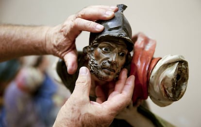 Al lado de un conjunto de miembros del cuerpo humano, pies, manos, brazos, modelados en yeso para ser imitados por los alumnos de la Academia, se alza una reproducción en bronce bruñido oscuro de la estatua conocida como Los cuatro moros, realizada por Brandini para la ciudad toscana de Livorno, obra del impar escultor Piero Tacca, autor de la excelsa estatua ecuestre de Felipe IV que cabalga airosa desde el corazón de la madrileña plaza de Oriente. En una estancia más de la Academia, las premiadas restauradoras Silvia Viana y Judith Gasca acometen la restauración de la obra del gran escultor dieciochesco Josep Ginés titulada La degollación de los santos Inocentes. Sus polícromas tallas tricentenarias, insertas en los belenes napolitanos del rey Carlos IV, exhiben sorprendentes detalles de excelsa minuciosidad.