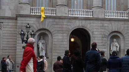 Lazo amarillo en el Ayuntamiento de Barcelona. ATLASVídeo: JOAN SÁNCHEZ