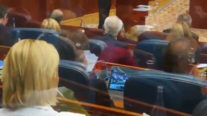 Ignacio García de Vinuesa, diputado del Partido Popular en la Asamblea de Madrid y alcalde de Alcobendas, ha sido grabado este viernes mientras veía en su tableta un partido de Copa Davis mientras su jefe de filas, Ángel Garrido, daba réplicas a la oposición en el debate del estado de la región.