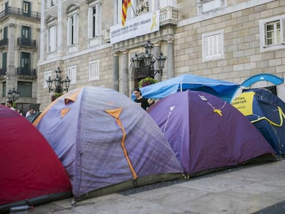 La acampada independentista de la plaza Sant Jaume de Barcelona, que permanecía ahí desde el pasado 11 de septiembre, ha retirado este viernes las tiendas de campaña que había instalado para no entorpecer los actos de La Mercè, la fiesta mayor de la ciudad condal. Los secesionistas han instalado un punto de información en un lateral de la plaza, entre las calles Jaume I y Llibreteria.