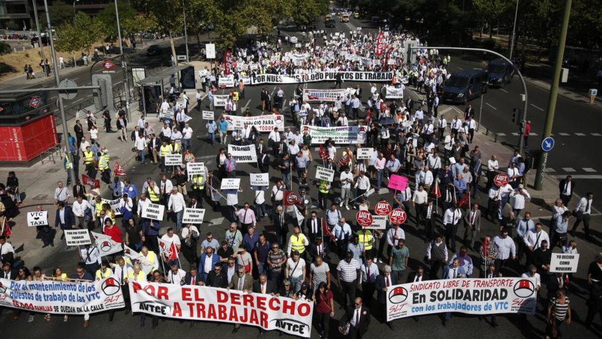 La manifestación se produjo después de que este miércoles Uber y Cabify ofrecieran viajes gratis a sus usuarios como forma de "protesta en positivo".
