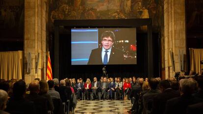 El Salón Sant Jordi, la sala más noble del Palau de la Generalitat, ha sido el espacio en el que este martes de ha presentado el denominado Consejo para la República, el órgano que promueve Carles Puigdemont desde Bélgica y que, según ha asegurado el propio 'expresident', busca preparar la república catalana desde el exterior. Puigdemont ha asegurado que el Consell, que será una fundación privada de jurisdicción belga, hará los debates “que el Parlament no puede tener” y al que "no se le puede aplicar el artículo 155 de la Constitución".