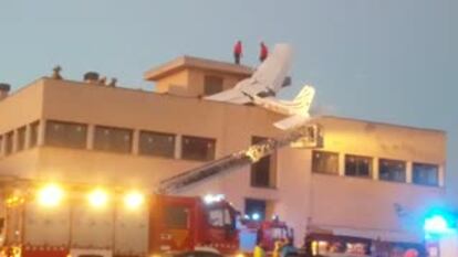 Según ha indicado Protección Civil de la Generalitat, los servicios de emergencias recibieron a las 17.15 un aviso del aeropuerto de Sabadell horas que informaba de que una avioneta con dos tripulantes que se disponía a aterrizar se había estrellado contra el techo de una gasolinera.