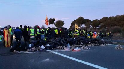 Los autodenominados Comités en Defensa de la República (CDR) cortan la AP-7, en Tarragona, en una foto de archivo. En vídeo, la portavoz del Govern Elsa Artadi defiende la actuación de los Mossos d'Esquadra.Vídeo: CDR_CAMBRILS (ep) | eP