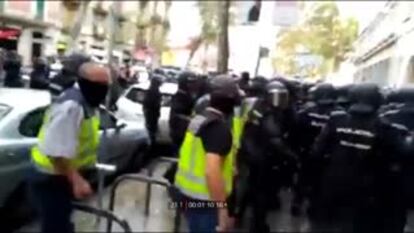 El único agente de la brigada de información de la Policía investigado por las cargas del referéndum del 1-O —el resto son antidisturbios— ha tratado de sacudirse este lunes la responsabilidad ante el juez. El policía está siendo investigado por un delito de lesiones por propinar una patada a un hombre que estaba en el suelo junto a la Escola Pia de Sant Antoni, uno de los centros escolares habilitados como puntos de votación para el referéndum. Pese a que la escena fue grabada en vídeo por un ciudadano, el agente ha rechazado haber pegado una patada y ha dicho que solo trató de “apartar” al hombre con el pie para pasar.