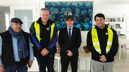 Cuatro taxistas de Barcelona se han desplazado esta madrugada hasta la bautizada como la Casa de la República en Bruselas donde vive el expresidente de la Generalitat Carles Puigdemont. Los taxistas han llegado esta mañana y el propio Puidemont les ha recibido en el exterior de la vivienda. "Muy agradecido a los representantes del sector del taxi de Barcelona, que han hecho un largo viaje para venir a expresarme sus preocupaciones, sus demandas y también sus propuestas para el futuro", ha dicho Puigdemont en su cuenta de Twitter.