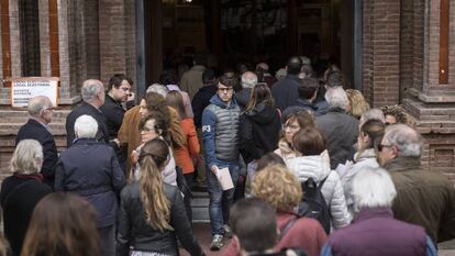 A unos pocos kilómetros de uno de los municipios obreros del antes llamado cinturón rojo se encuentra el barrio barcelonés de Sarrià. Una de las zonas más pudientes de la capital catalana. Cayetana Álvarez de Toledo votó por correo el miércoles pero ha acompañado a una compañera de su lista a votar a la escuela Santa Dorotea de Sarrià. La mayoría de los candidatos y líderes políticos en Barcelona tienen los colegios electorales en zonas cercanas a sus domicilios, situados en Sarrià y en barrios que están en la zona alta. En el Santa Dorotea votar requiere su tiempo debido a la cantidad de vecinos que acuden en masa. “Ahora es el peor momento porque es la salida de misa”, recuerda una mujer a una vecina. Los interventores visten casi igual. Solo les diferencia políticamente el cartel que les identifica. Una interventora de Front Republicà, una escisión de la CUP, habla animadamente con la de Ciudadanos. Y así va pasando la mañana mientras el interventor de Vox se apresura a saludar con un “hola buenos días” a todo aquel que entra por la puerta del colegio. Una escuela con vecinos como Fernando de Páramo, de Ciudadanos, que acompañado de mujer y carrito con niña acude a su cita con las urnas.