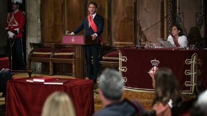 El concejal pronunció un mensaje europeísta en el que arremetió contra el independentismo y defendió el respeto a la justicia pero también apeló al “diálogo” y a las “soluciones políticas” para Cataluña
