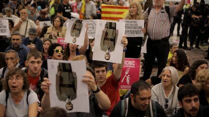 El ensayo de mayor envergadura fue este domingo, con la organización de una sentada en el vestíbulo de la estación de trenes de Sants. Unas 200 personas —sobre todo familias y personas mayores— se sentaron a las diez de la mañana en la estación, sin entrar en los andenes, gritando proclamas a favor de los presos y de la independencia. Los Mossos les dejaron permanecer allí 13 minutos, el tiempo de intentar buscar un interlocutor que no encontraron, según fuentes policiales. Uno a uno, fueron desalojados. La protesta siguió hasta las dos de la tarde, cortando la Gran Vía y un pequeño grupo acabó frente a la sede de la Policía Nacional. Todo, sin altercados. El 25 de septiembre, protagonizaron acampadas en sedes de Caixabank. “Ellos también forman parte de la represión. La respuesta a la sentencia también los incluirá”, defendieron.