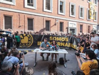 Decenas de jóvenes han acudido al llamamiento en redes sociales y esperaban diseminados en pequeños grupos en el parque frente a La Almudena, resguardados de la lluvia bajo los árboles. Venían a velar por su edificio. "Tenían un huerto urbano, un gimnasio, una biblioteca, una tienda gratis... El sábado pasado estuvimos aquí en unas jornadas y el domingo en un concierto", comenta una joven sentada en el bordillo de la acera. Otra vecina que pasaba por allí con su bebé de un año, dice que venía a clases de artes marciales. "El desalojo me parece muy triste porque este lugar está muy vinculado al barrio desde hace años", explica.