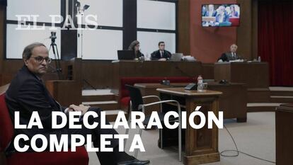 Poca tensión cinematográfica tuvo, por lo demás, una declaración que fue un calco de la que ya prestó en la fase de instrucción. Torra trató de llevar siempre su discurso al terreno político y se negó a contestar a las preguntas de Vox (y a las de la Fiscalía) por ser éste “un partido franquista”. “Este país ha sufrido 40 años de dictadura franquista...”, empezó antes de ser interrumpido por otro presidente, el que manda en la sala de vistas, Jesús Barrientos. “Tiene derecho a contestar o no, pero no voy a permitir descalificaciones”, le avisó.